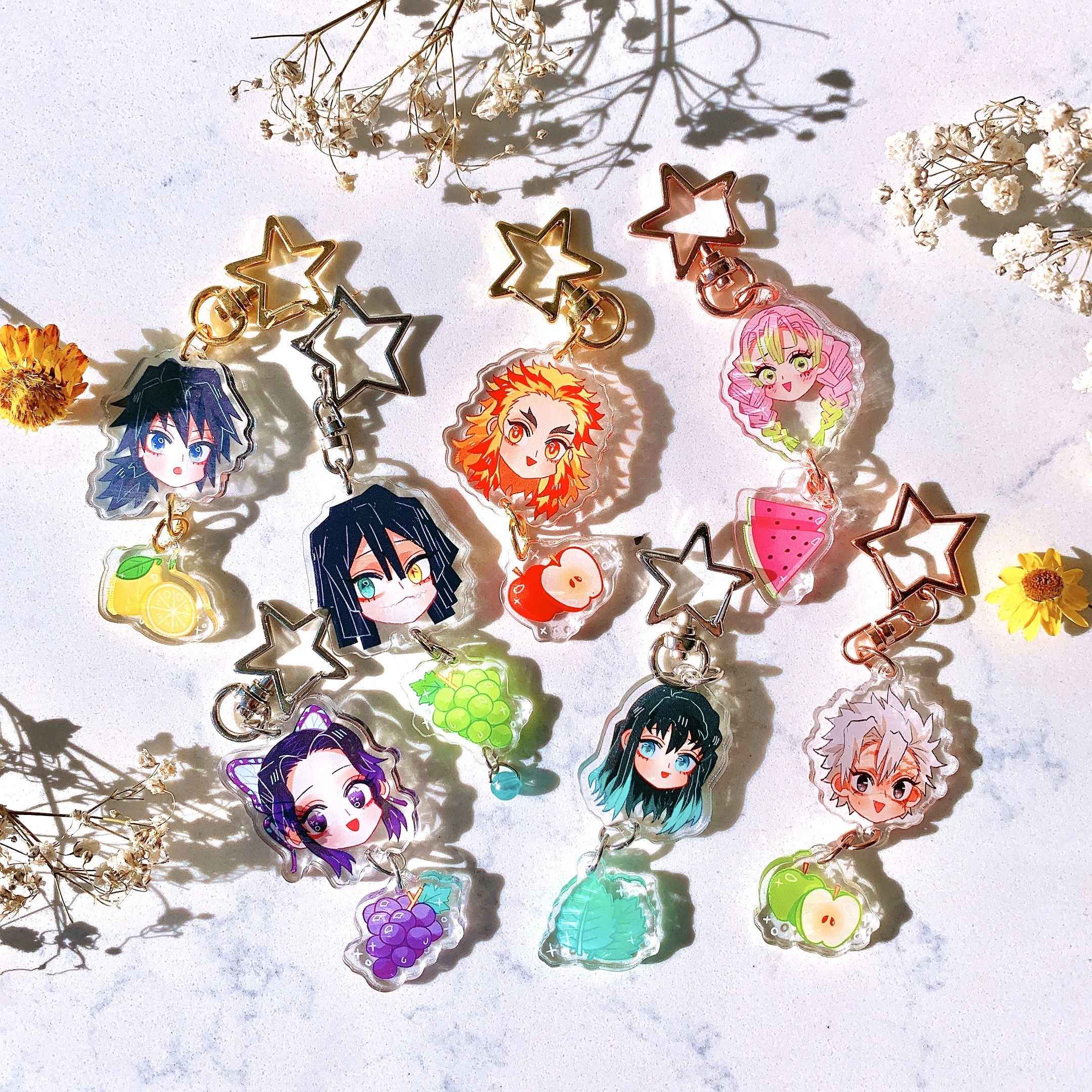 KIMETSU NO YAIBA PILLARS Dangle Acrylic Charms *Double Sided*